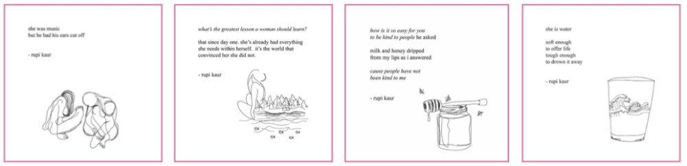 A good example of Instagram poetry success that this article also mentions is Rupi Kaur. It has brought her worldwide fame and acclaim. “Her first collection, milk & honey, has been translated into 40 languages and has sold 3.5 million copies, stealing the position of best-selling poetry book from The Odyssey.” If this is not a great achievement then i don’t know what is. Her poetry is beautiful, relatable and simplistic, creating a perfect basis for her ever growing fame. As a casual reader of her poetry, i have included some of my favourite extracts of hers.